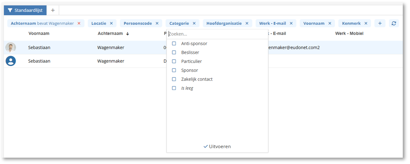 Algemeen | Op alle lijstfilters met een waardelijst is het nu ook mogelijk om 'Is leeg' te kiezen.