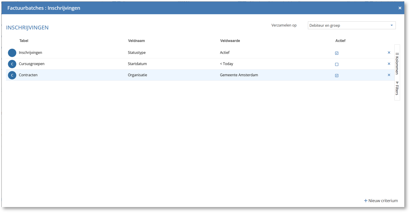 Hiermee kan bij batchfacturatie voortaan ook worden gefilterd op: