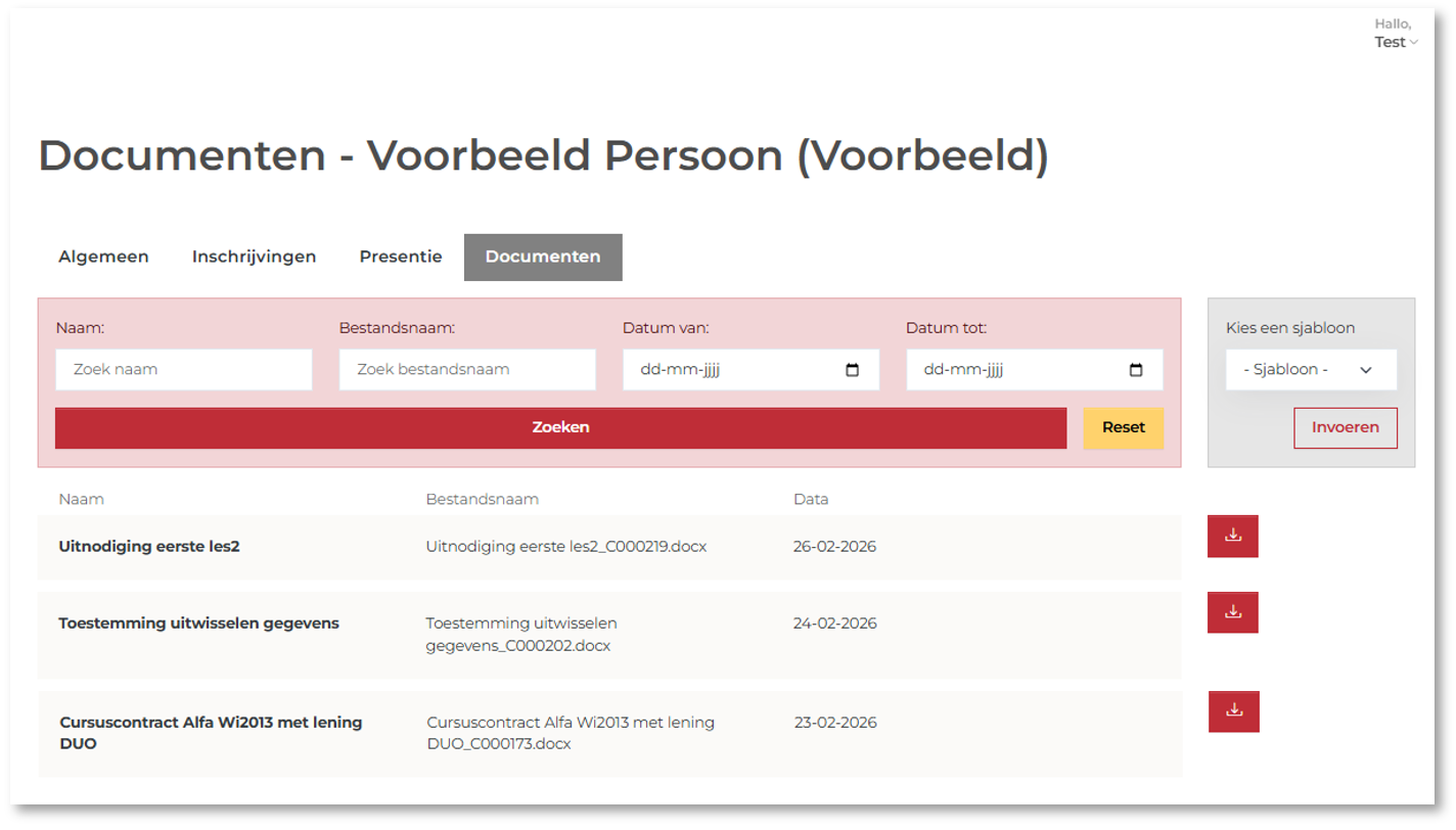 Het is vanaf nu mogelijk om Word‑samenvoegsjablonen uit het CRM rechtstreeks te gebruiken op de Mijn Omgeving. Hiermee kunnen websitegebruikers zelf documenten genereren op basis van vooraf ingerichte sjablonen die speciaal voor deze doelgroep beschikbaar zijn gemaakt.