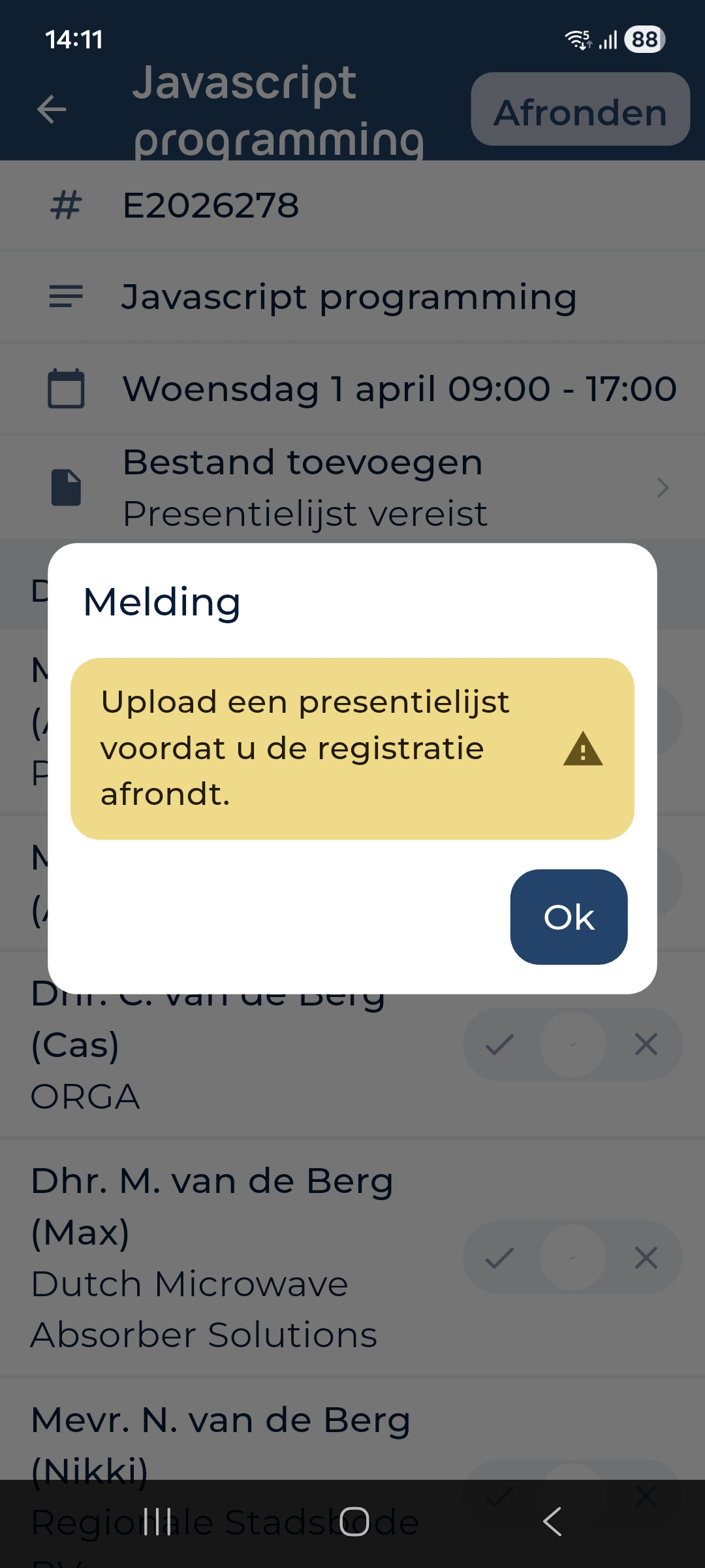 Bij een presentieregistratie is het nu mogelijk om de status terug te zetten naar neutraal, nadat eerder 'aanwezig' of 'afwezig' was geregistreerd. Handig als een deelnemer mogelijk stopt maar dit nog niet administratief is verwerkt — de status blijft dan open totdat de administratie dit afhandelt.